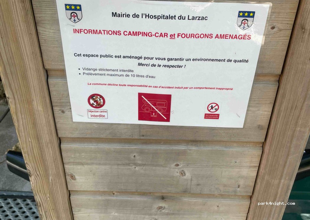 Affiche indiquant qu'il est interdit de prélèver plus de 10 L d'eau potable pour les camping caristes .... bon tant pis on vous laisse votre eau Merci l'hospitalet pour votre hospitalité....