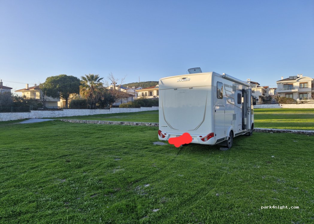 Parking très bien situé pour visiter le petit centre (moins de 300 mètres à pied). Parking grand adapté à tous les gabarit mais un peu en pente les places à gauche sont moins en pente. 200tl pour 24h. Nuit calme, quelques aboiements en début de soirée. Beaucoup de chats de rue et des chiens surtout le long du port.