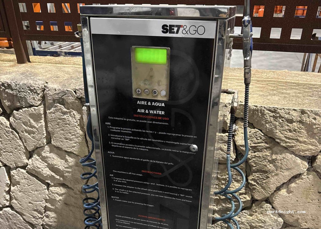 Fuimos a la estación de butano y en la gasolinera que hay justo al lado hay agua y aire gratis echa un buen chorro de agua.
