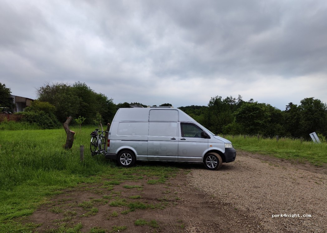 You can park over night. Toilet is on parking lot. Fire place, Kids playgroud and tables, everything need.