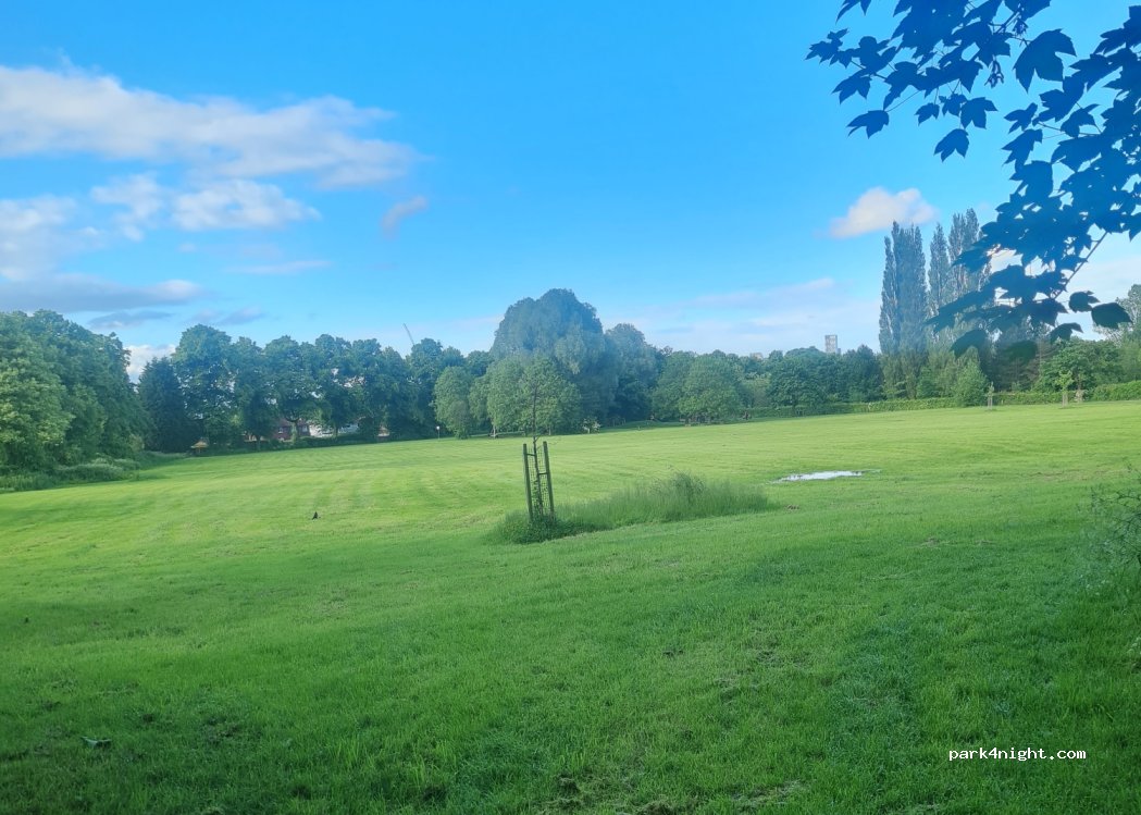 Parcheggio in mezzo alla rotonda, nessun segno di restrizioni/pagamenti e una quindicina di posti auto. molto vicino all'Old Trafford Cricket Ground, senza servizi e un po' rumoroso con le macchine ma una strada abbastanza tranquilla di notte.