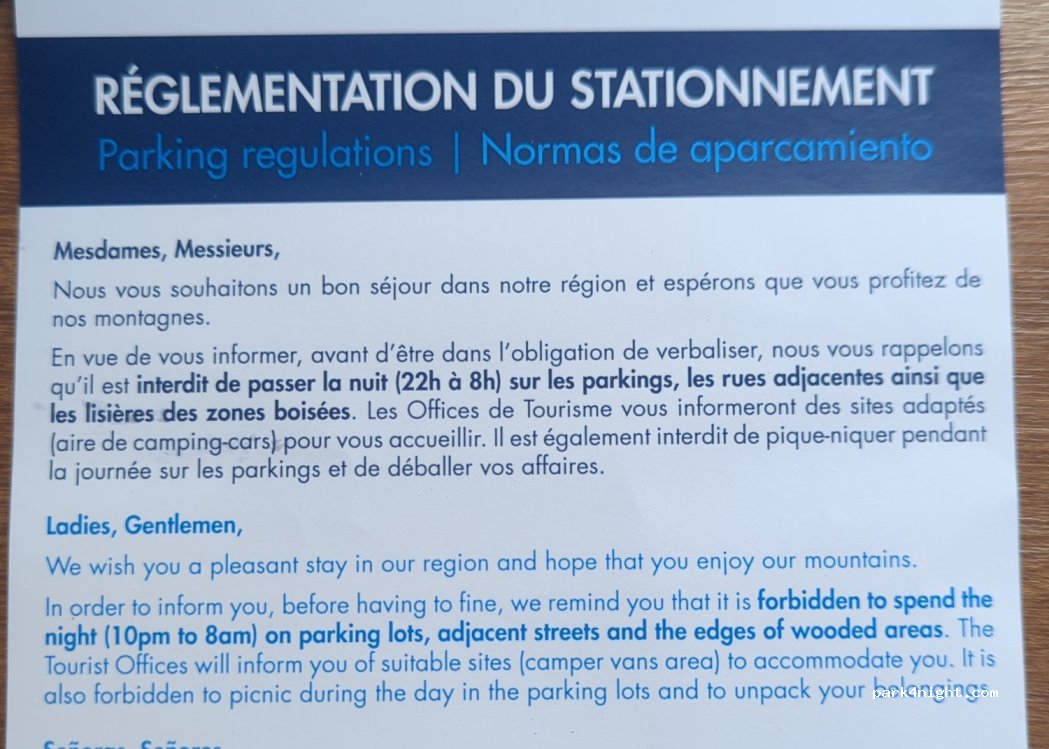 Aucun stationnement de nuit (22h-8h) n'est autorisé pour le moment. Vous pouvez vous garer jusqu'à 22h.