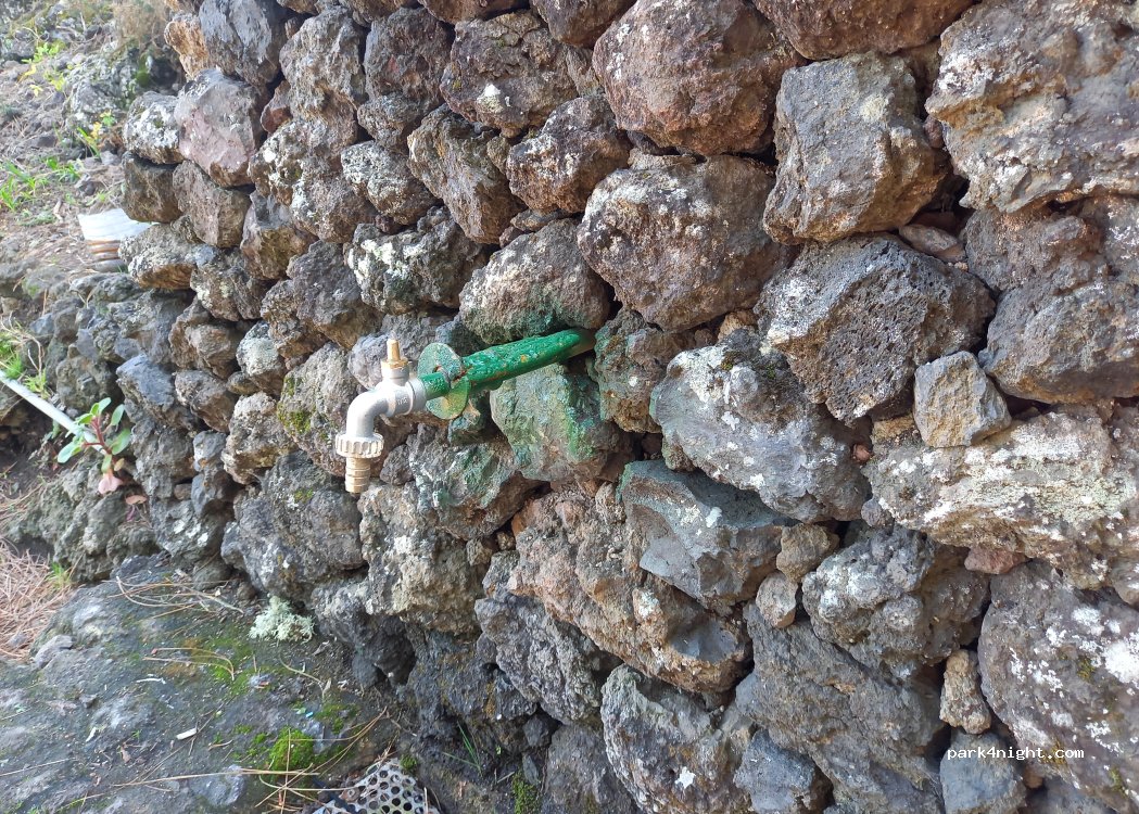 Fuente con grifo de agua, descarga aprox. 1,5 l/m, aprox. Sendero de 50 m por encima de la calle donde también hay plazas de aparcamiento.