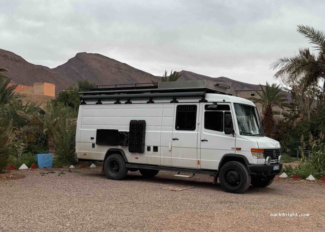 Sehr schöner Platz teilweise geschotterte Stellflächen. Auf Bestellung kann im großen Berberzelt abends gegessen werden. Wenn die Plätze nicht ausreichen, „No Problem“ das Essen wird ins WoMo geliefert. Wir hatten beim Chef einen Ausflug in die Sahara gebucht, waren sehr zufrieden, Super Guide, der und ein Stück vom wahren Marokko gezeigt hat. Lasst euch nicht von der Zufahrt abschrecken!