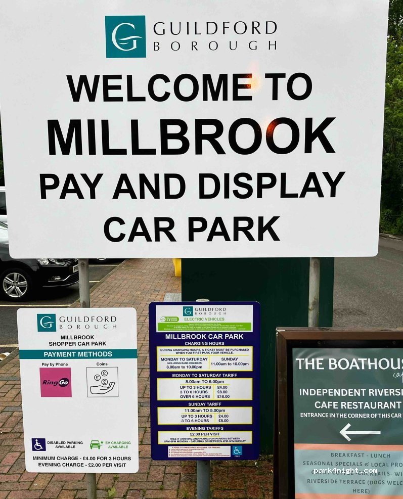 Great spot for visiting Guildford. We stayed one night and it was very quiet and peaceful. We arrived on a Saturday , so it was busy initially , but was quiet by the evening. Used the app to pay for parking - free from 10pm until 11.00 am on a Sunday. Good value and very close to the local shops and restaurants.