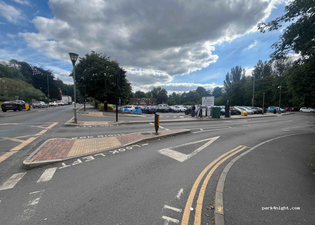 Ampio parcheggio appena fuori dalla strada principale a pagamento fino alle 22:00 di £ 1,50 all'ora gratuito fino alle 8:00 molti pub locali e punti ristoro nelle vicinanze