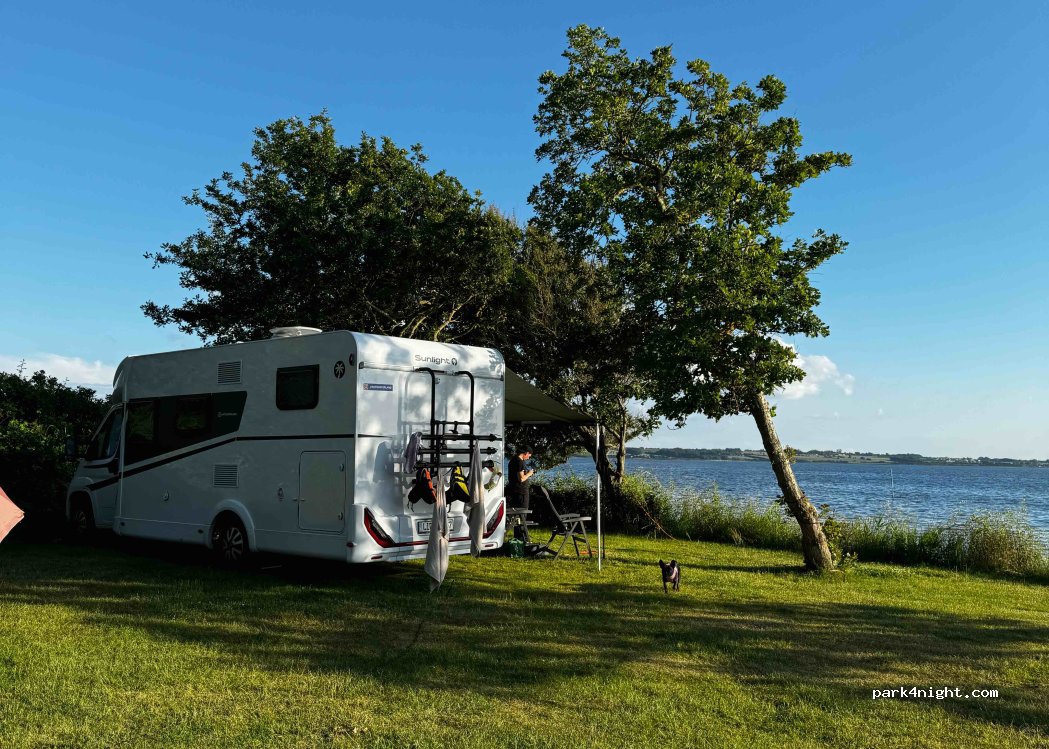 Süßer Campingplatz mit großen Plätzen. Leider keinen Strand aber einen Steg, durch den man ins Wasser kommt. Nette Betreiber und im Café gibt es leckeren Kaffee. 51€ für eine Nacht sehr teuer aber wir sind auch in der Hauptsaison.
