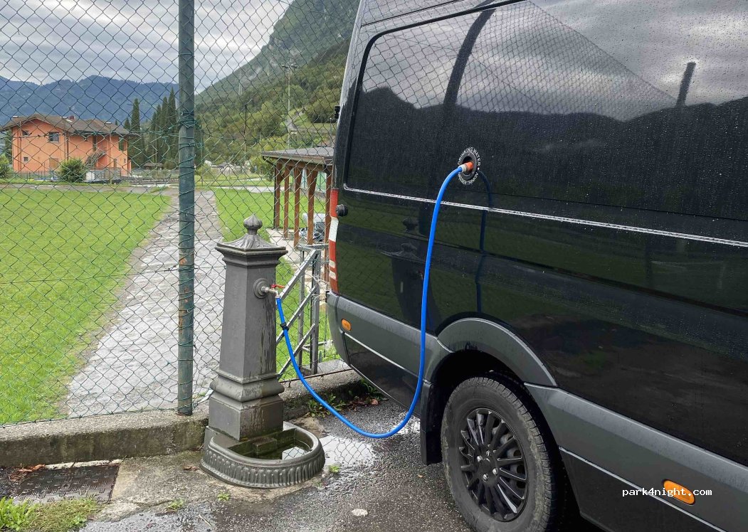 posto comodo, alcuni stalli sono in leggera pendenza. fontana per acqua. Notte tranquilla.