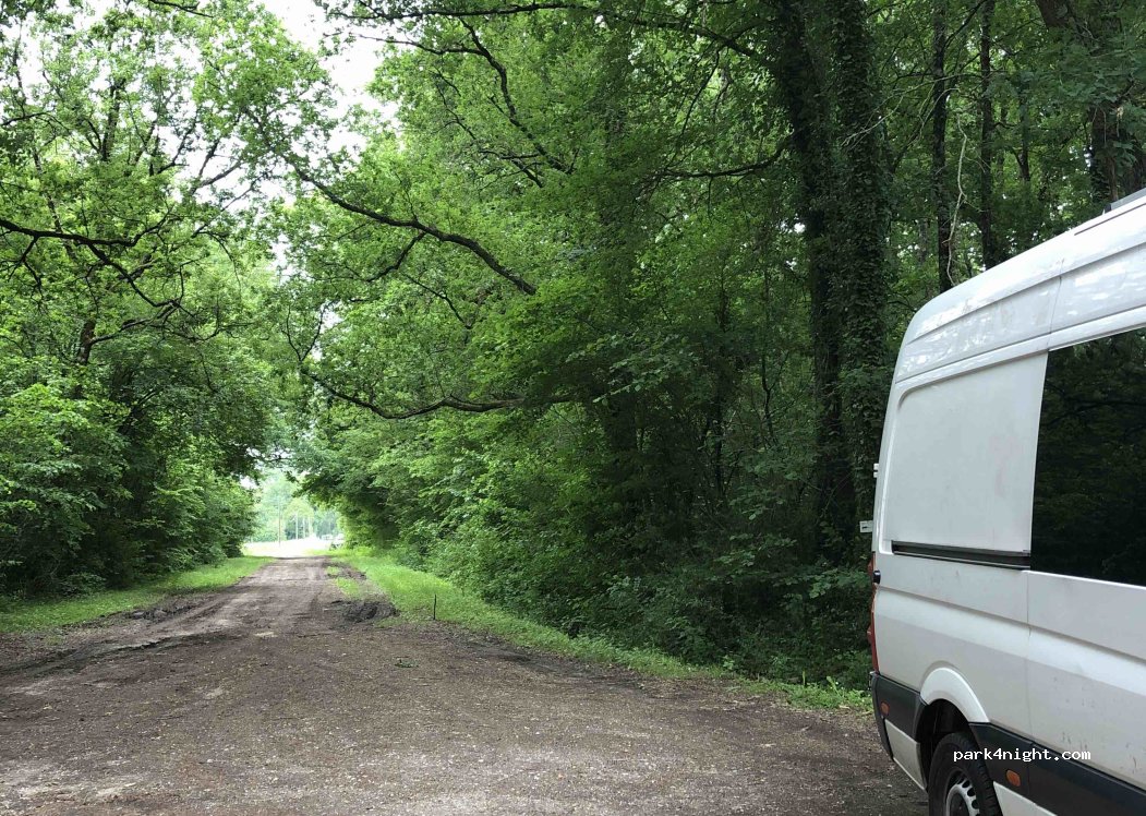 Site of the Roman road with explanatory panel. Shaded flat parking for several motorhomes.