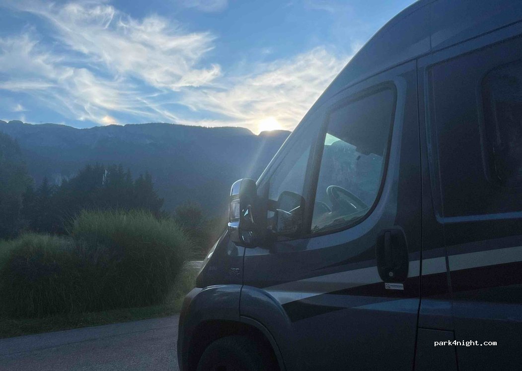Garée là pour la nuit car le premier spot où je voulais me garer n'était pas assez safe. OK juste pour un dépannage mais super bruyant car en bord de route, camping à côté et bcp de lumière des lampadaires. Il a cependant le mérite d'être gratuit à partir de 19h.