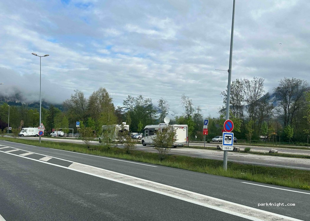 Le long de la route la plus passante et à côté d'un camping. Extrêmement bruyant pour y passer la nuit en camping car (quelques places sans limite de hauteur) . Peut être plus pratique avec un van, car possible de s'éloigner de le route (parking avec limite de hauteur ). Parking payant de 9h-12h, 14h-19h.