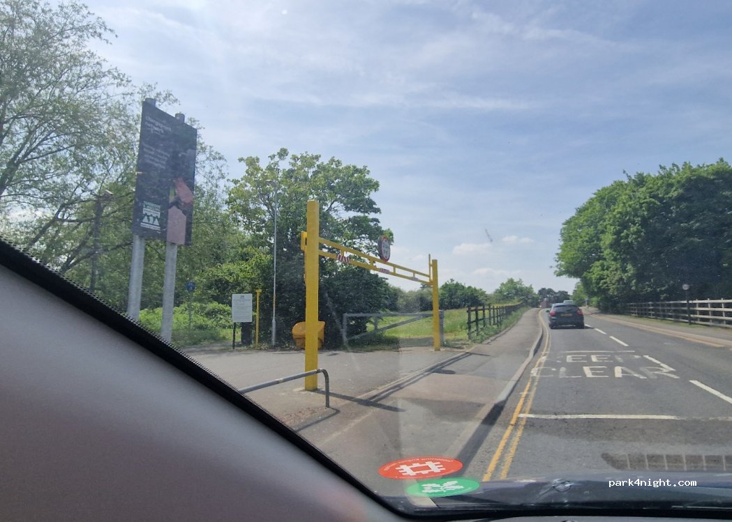 The post code takes you to the east car park, failed to get in due to cars parked on the access road. Due to pathetic access the east car park has 1* but deserves zero as you can't get in with a camper. a small car probably can. if you did get in (no cars on road), good luck getting out, as bet your life there would be cars. The nearby west car park has no such issues and rates a 5* rating.