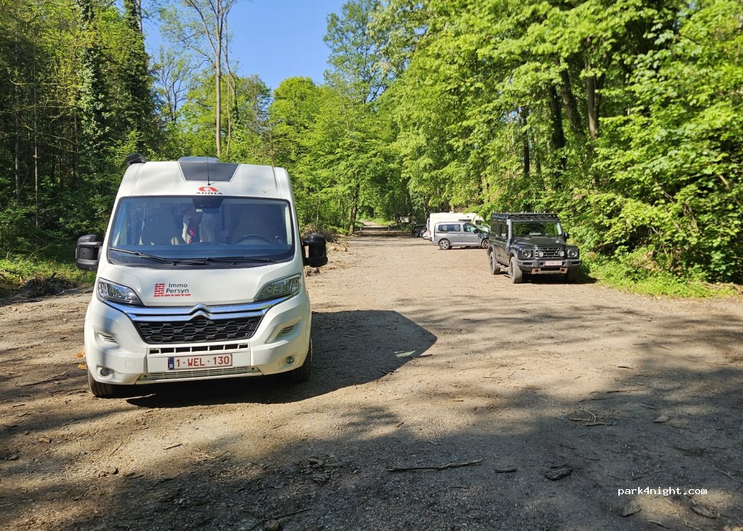 Découvert au hasard d'une balade dans les bois, magnifique parking, calme, tranquille, point de départ de très nombreuses balades. Accès faisable avec notre van (6,40m), en marche arrière, et donc à éviter avec de plus gros gabarits