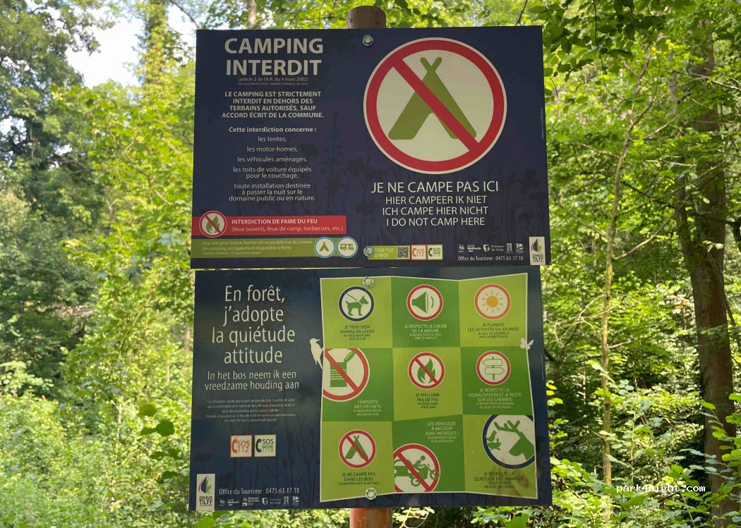 Freshly placed sign that it is prohibited to camp at the parking. We decided to leave.