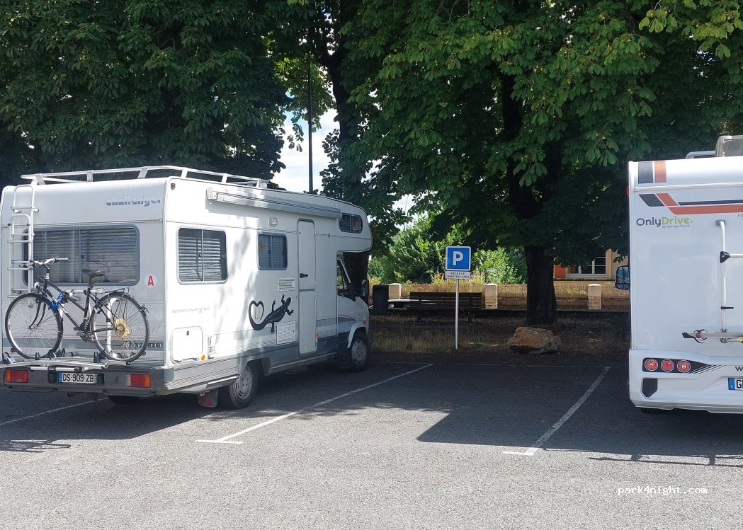 Plus d'emplacements spécifiques,mais pas d'interdiction. Nous avons passé une nuit paisible sur ce parking bien situé en centre ville.