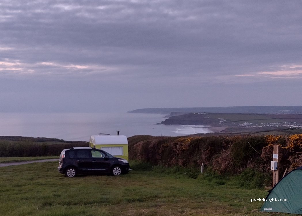 Fantastic site with a view. A spacious field facing the sea. The site only allow camp site along the edge of the field so not too crowded and everyone get a view. Quiet site with friendly staff. A good facility block with clean toilets, wash basins etc, in door washing up area and coin operated washing/dryer machine. Nearest beach is 20 min walk down hill (or 5 min driving). We loved it