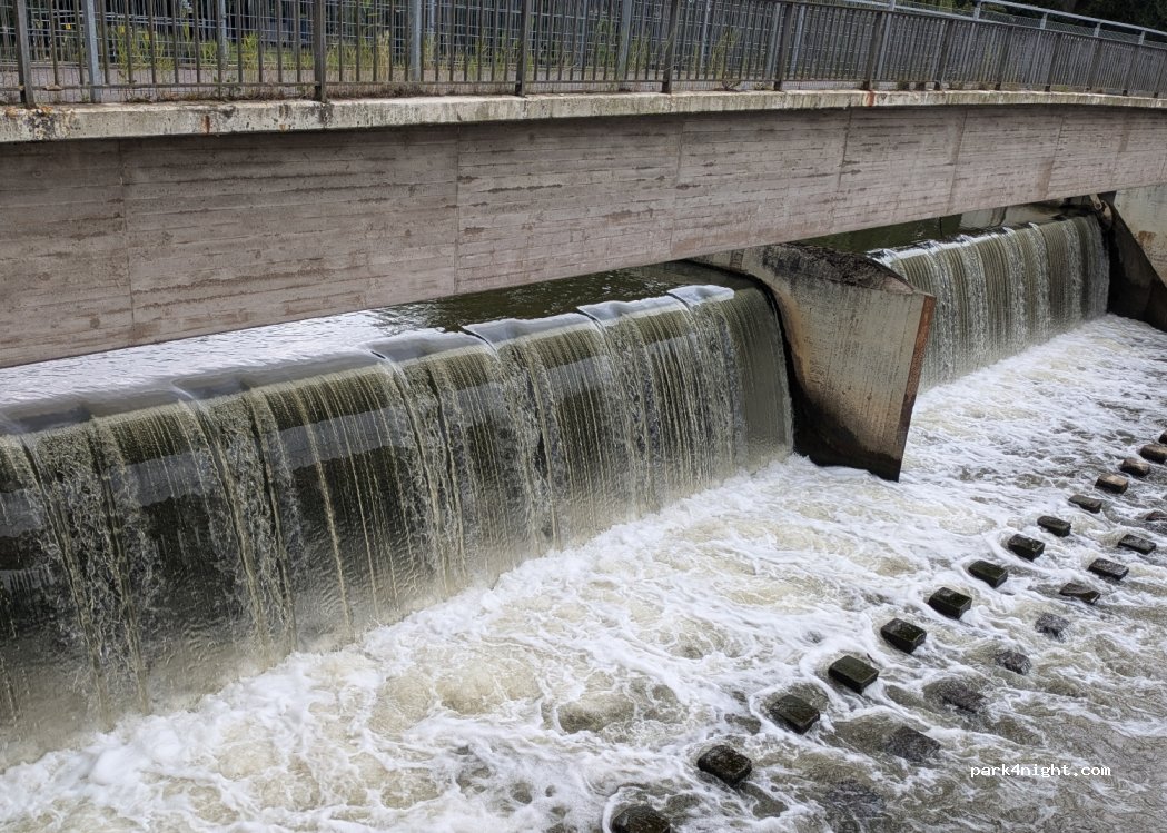 von Süden aus anfahren, schöner Parkplatz, eben und gepflastert, keine Verbotsschilder, die Brücke ist zugepollert,schöne Wanderungen mit dem hund