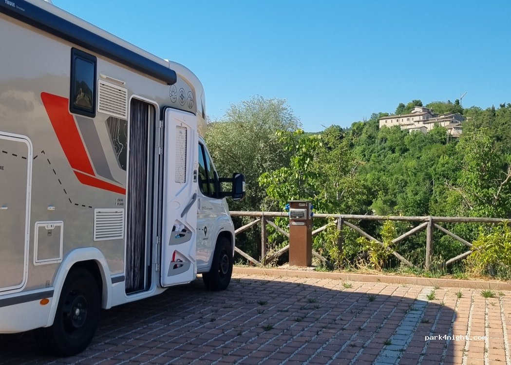 area sosta nuovissima, bella e panoramica. ad oggi ancora chiusa, ho chiamato in comune che mi informa che dovrebbe aprire in agosto 2022. Il funzionario ha premesso che sarà a pagamento. non conosco l'importo...