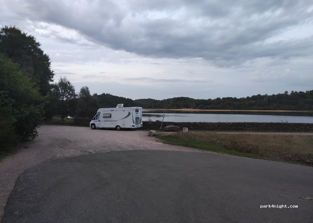 Petit parking, quand on est bien garé au fond le long du mur, un rêve face au lac de Chamboux.