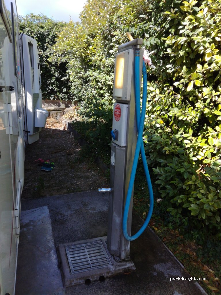 Petite aire sympa pour 4 camping-cars, ombragée avec tous les services. Eau, vidange, électricité mais pas de TV