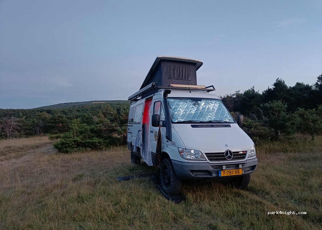Piso para 2 o 3 furgonetas. A lo largo de la carretera, pero poco tráfico por la noche. bonita vista.