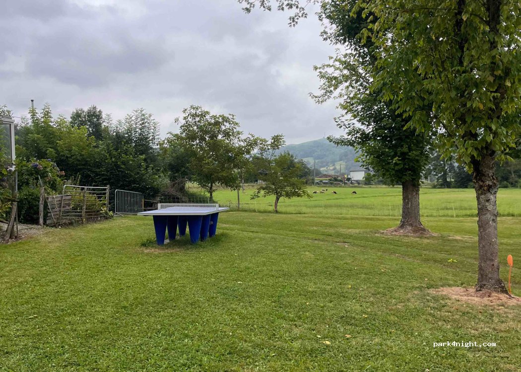 Een leuk veld met bomen. Schapen met lammetjes in de wei. Uitstapje naar Lourdes met de fiets te doen. Vriendelijk ontvangst. Schoon sanitair. Redelijke prijs. Camper 2 personen electric en hond €19,50
