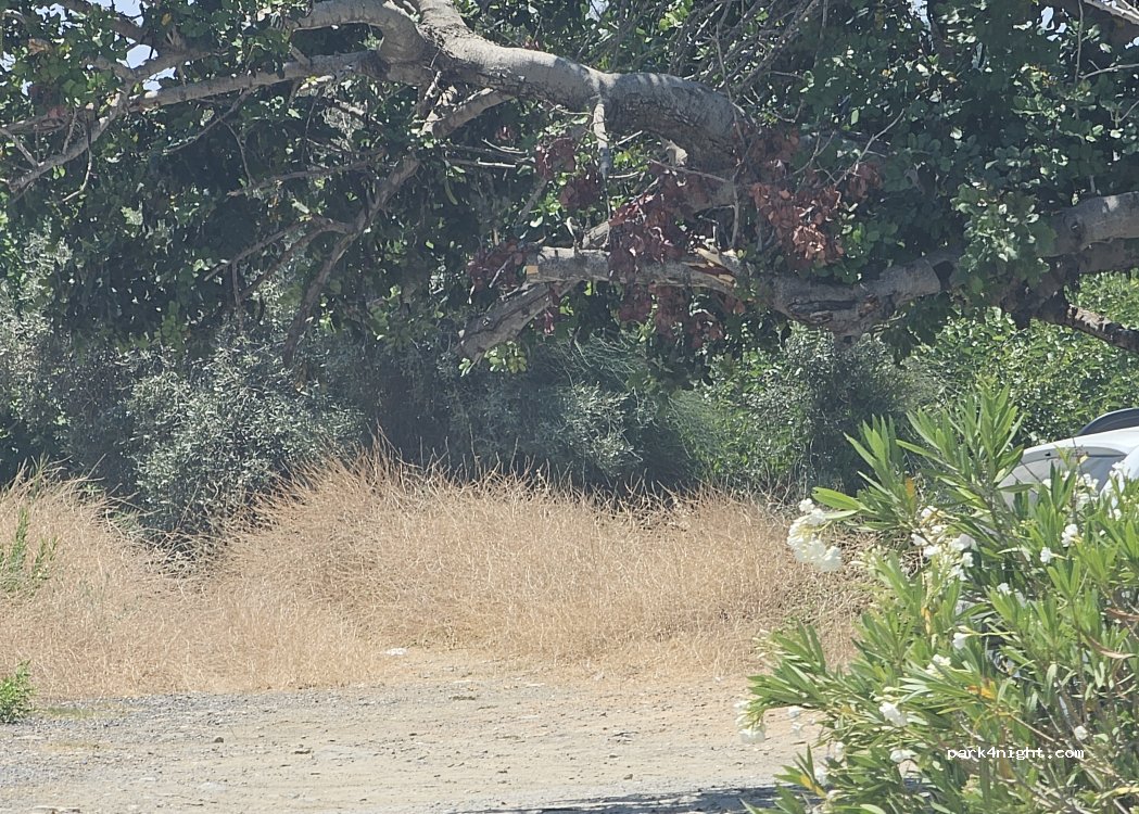 Al borde de la carretera, debajo de un árbol lugar muy tranquilo. Como está en una carretera antigua (Alanya a Mersin), pasan pocos vehículos, muy tranquila. Magnífica puesta de sol. No hay servicios alrededor. Hay una playa justo debajo del estacionamiento. Playa de arena, fondo rocoso pero muy agradable para nadar. El lugar solo está disponible para una persona.