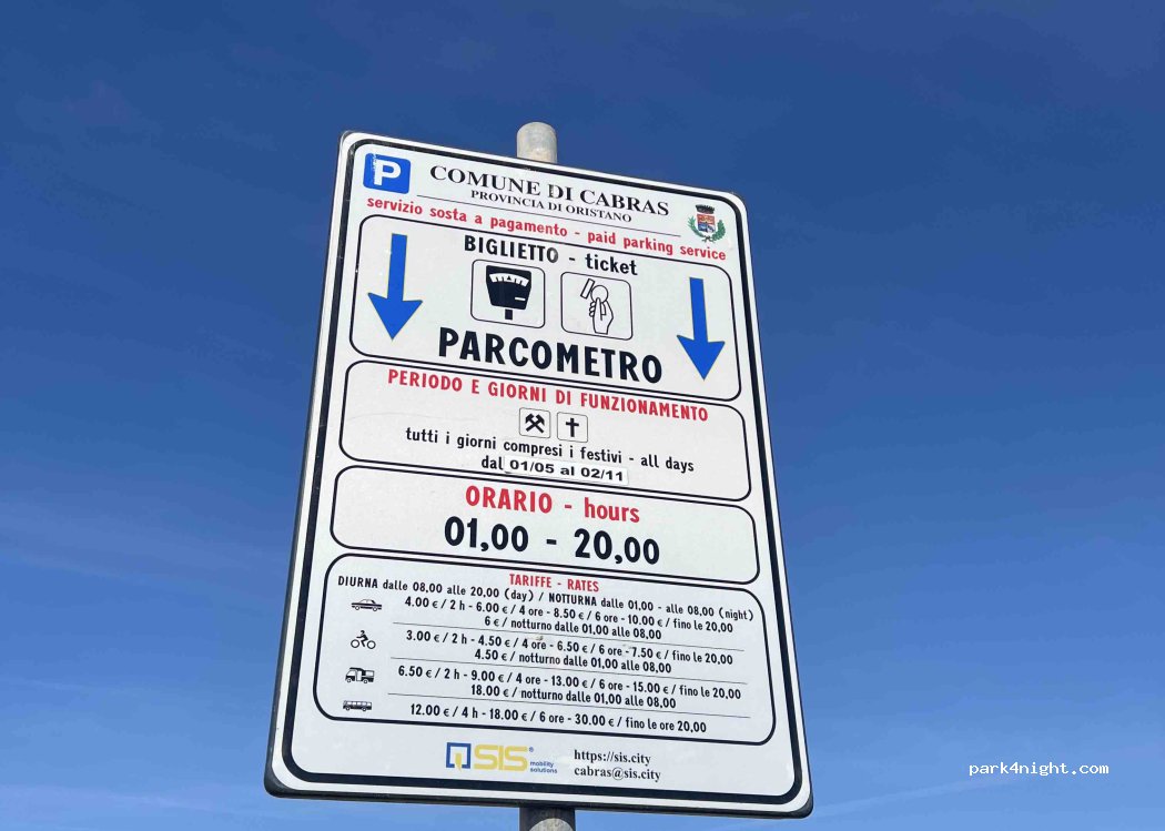 Ampio parcheggio in piano, su sterrato a pagamento dalle 01 alle 20 perfetto per la notte e praticamente davanti alla stupenda spiaggia di is arutas. Di giorno disponibile i servizi in parcheggio e docce in spiaggia (a pagamento).