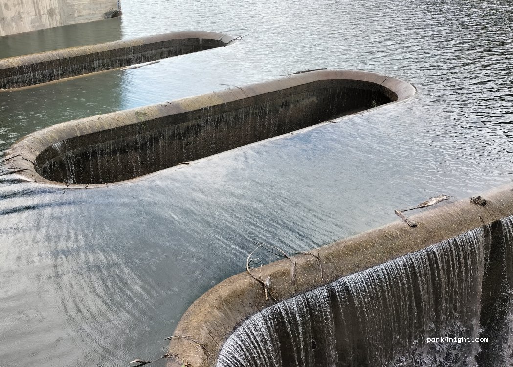 très calme, beau paysage sur le barrage, nous n'avons pas entendu la route