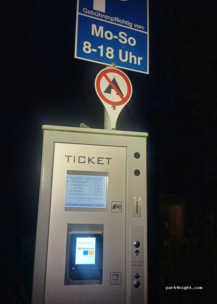 An sich ganz schöner Parkplatz, mittlerweile aber nicht mehr gebührenfrei. 15 Minuten kann man frei Parken, danach kostet es Geld.