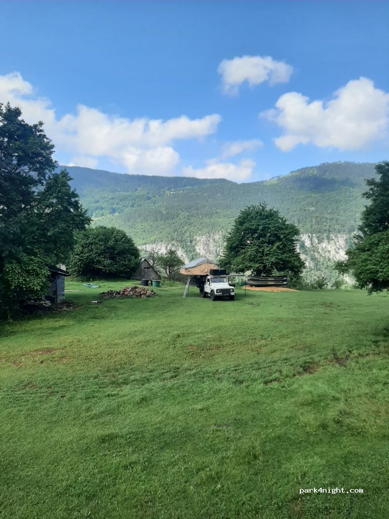 Einfacher Stellplatz auf einem Wiesengrundstück über der Taraschlucht. Leider war das WC , welches sich im Haus in einem Doppelzimmer befindet ausser Betrieb . Als Zwischenstop ok.