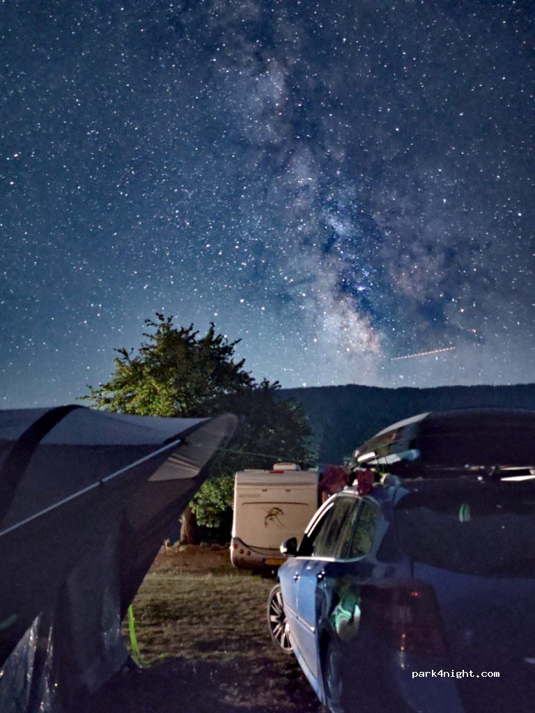 This is a authentic farm stop. Their main business being rafting down the Tara. Friendly family, daughter speaks good English. Facilities are in an apartment (didn’t use), they are aware more work needs to be done for camping guests. Yes, cows roaming, vegetable plot & orchard. Great views of the bridge and dark skies. €15 a night for 2 people & van conversion. Would use again.