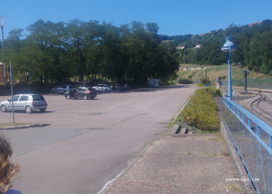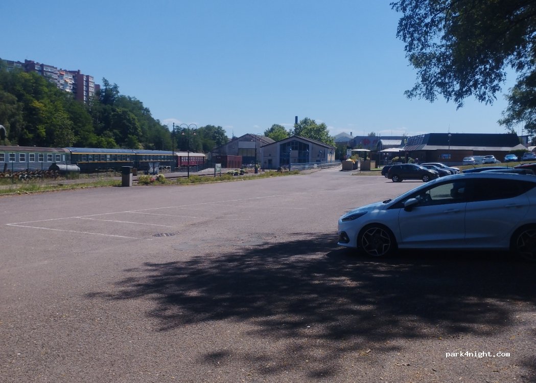 Parking avec une légère pente, Mc Do juste à côté, ainsi que Carrefour Market. Petite gare avec petit train touristique. Il y a également un entrepôt avec plusieurs locomotives a Vapeur et une loco électrique en cours de restauration.