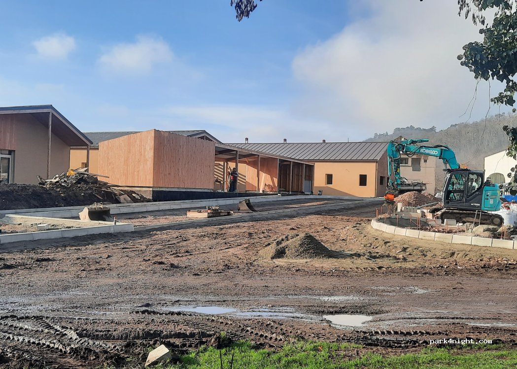 Grand parking à proximité de la gare et d'un McDonald's, et de la Gare du parc touristique des Combes.