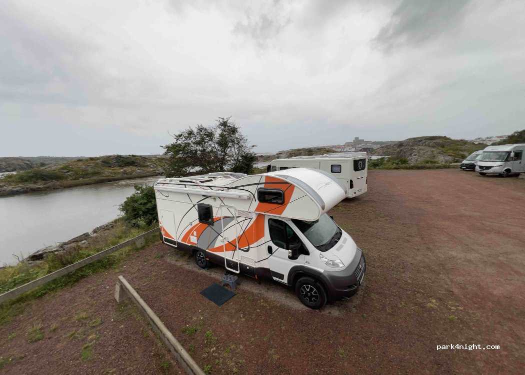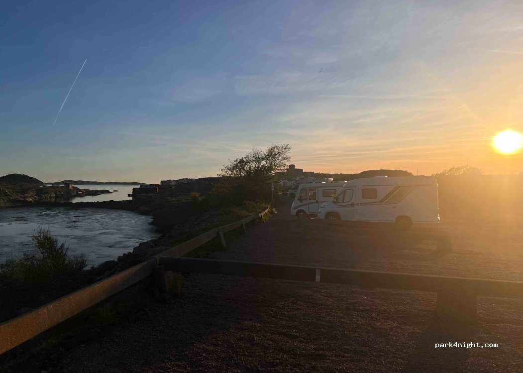 Prima plek om Marstrand te bezoeken. Betalen met EasyPark app en code 1784 (husbil) SEK 207,03 per 24 uur. De eerste parkeerplaatsen zijn voor auto’s met een ander EasyPark code. Er staan ook betaalautomaten. Alles is op loopafstand, ook supermarktje in centrum. Geen voorzieningen behalve afval (ma. 7.00 uur geleegd) en composttoilet. Op Marstrand camping kan er voor SEK 50 geloosd/gevuld worden.