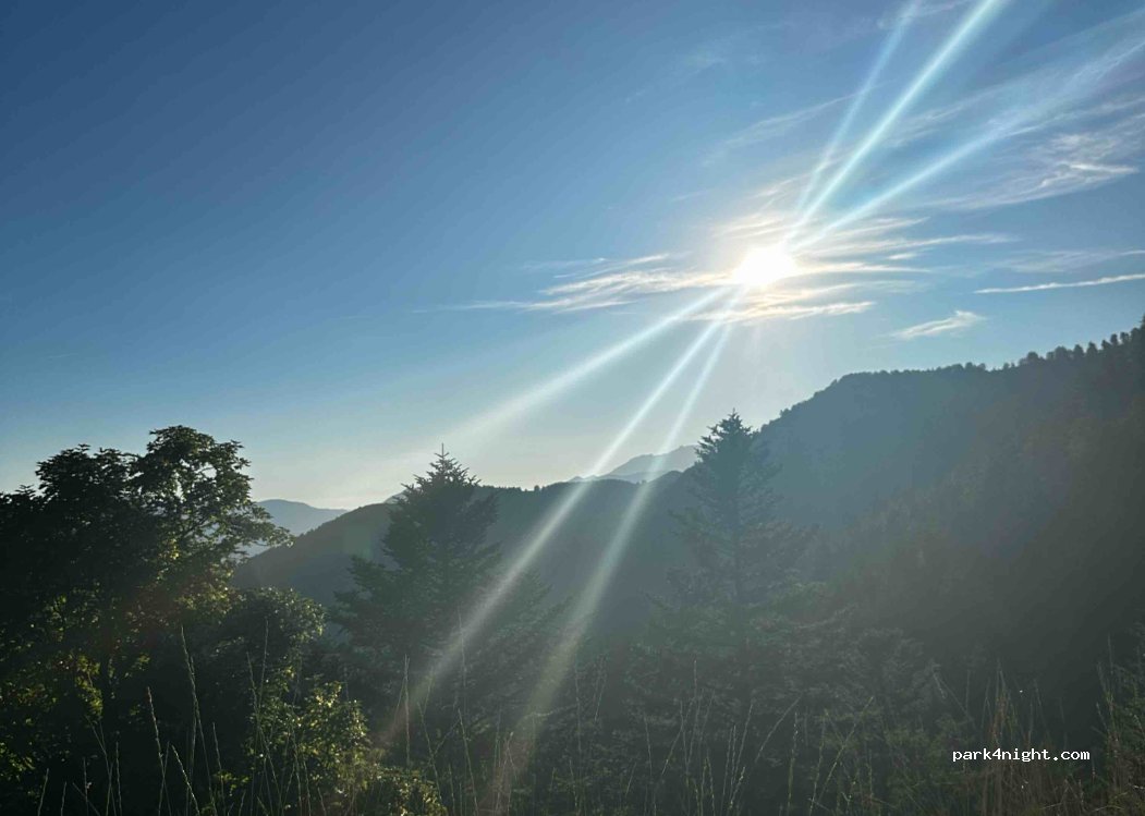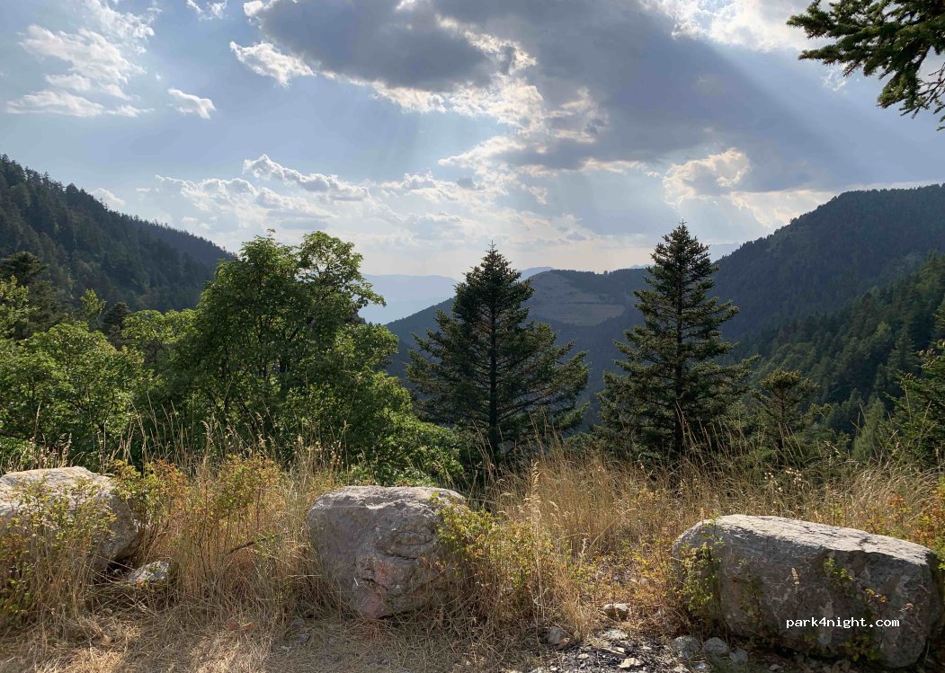 Emplacement impeccable sur le bord de la route forestière, jolie vue sur la vallée, en journee parking de départ de rando donc les gens arrivent assez tôt entre 6h et 8h