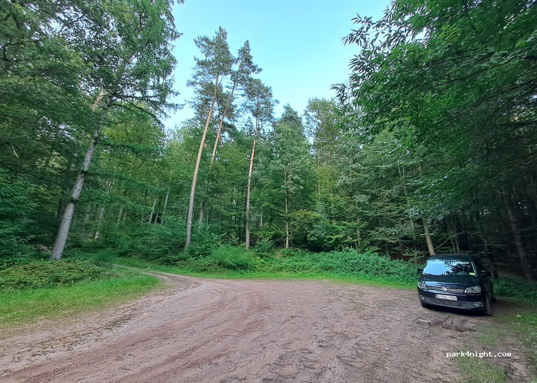 Ein Teil des Parkplatzes ist für Wohnmobile/Wohnwägen ausgeschildert, Platz für etwa 5 Fahrzeuge, doch teils mit PKWs belegt. Wegen einer Burg-Veranstaltung die ganze Nacht Lärm: Musik, Hupen, Gröhlen, ständiges An- und Abfahren. Statt erhoffter Ruhe im Wald vor dem frühen Wanderstart war an Schlaf nicht zu denken.