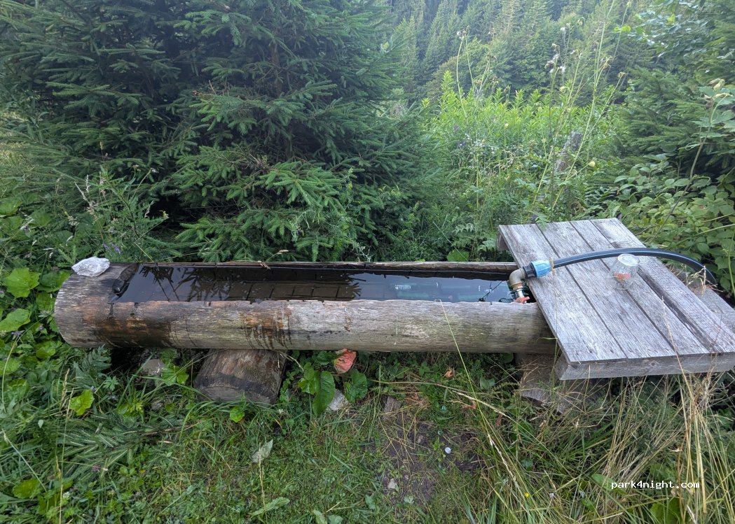 Bivouac très sympa car terrain plat , arrivée d’eau toujours présente et table en bois avec superbe vue sur la vallée. La route principale est juste en dessous mais on entend peu les voitures. Une ferme touristique n’est pas très loin avec de bons produits faits maison.