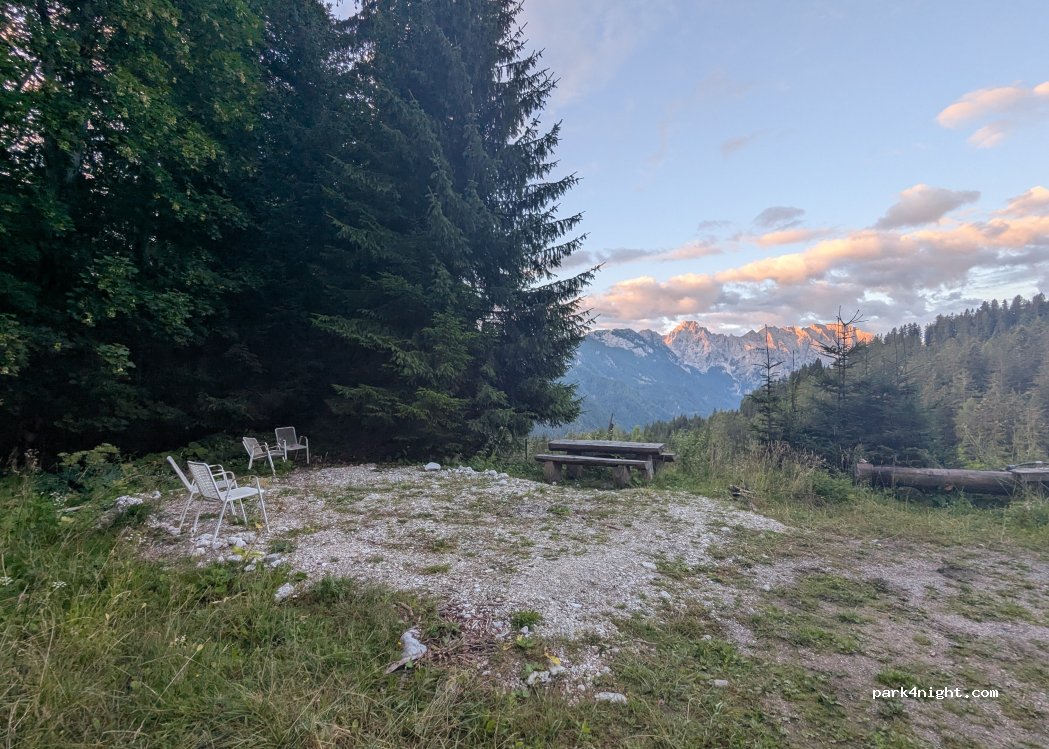 We did manage to get to the place but the road was realy bad due to upgoing forestery work. Nothing other than a Van suits here. Owner must have a plan to put a holiday house here. Did already some ground work. Also water pipes are laid to the place. Great view though to iconic mountain Ojstrica and Logarska valey.