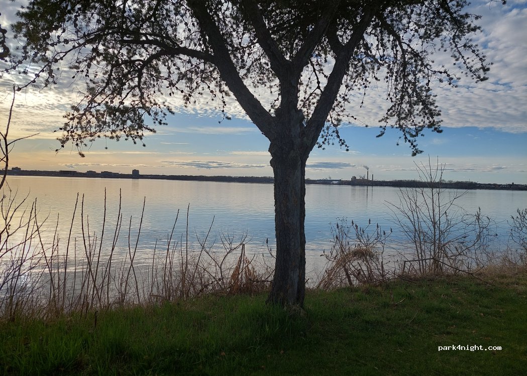 Gute Lage, direkt am Wasser. Relativ ruhig, wobei nachts das ein oder andere Schiff gehonkt hat. Mehrere Picknicktische, toller Sonnenuntergang und eine Toilette, die großteils sauber war (und 24/7 geöffnet). Mülleimer sind vorhanden. Mit uns stand noch ein Camper und ein Wohnmobil für eine Nacht Anfang September 2023 dort.