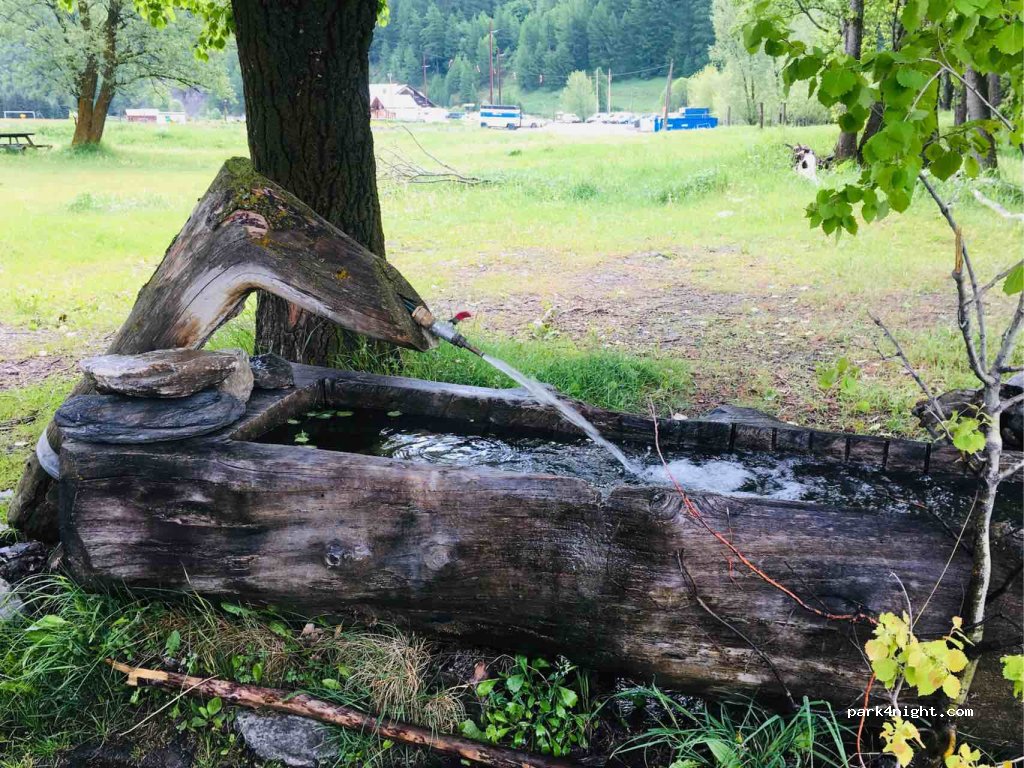 Terrain de pique-nique, 50 m avant le parking. On peut y stationner, à l’ombre j’y ai passé 2 nuits très silencieux à part le bruit du torrent. Il y a un abreuvoir avec une arrivée d’eau.