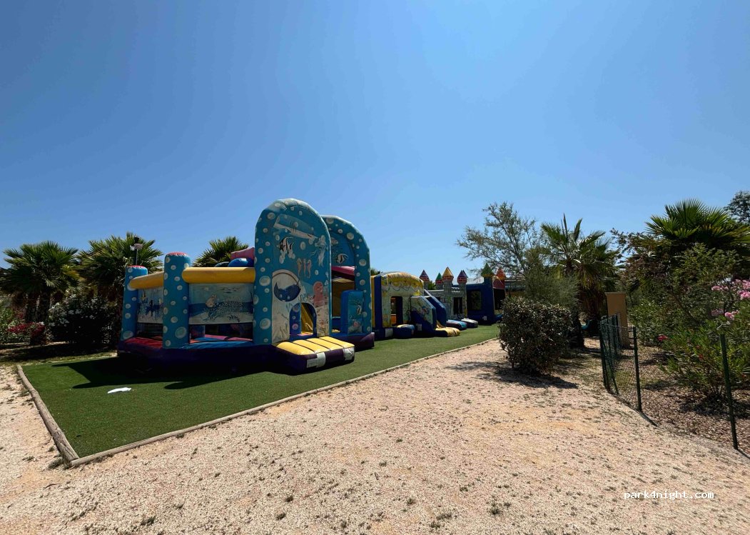 Campeggio molto grande con ampie piazzole. Bagni puliti anche perché poco sfruttati: la maggior parte degli utenti soggiorna in case mobili. Ideale per famiglie in quanto all’interno è presente un mini parco acquatico e strutture gonfiabili, palestra all’ aperto e parco giochi. Solo 4 stelle perché il mare di fronte non è bellissimo, e’ a fianco all’ aeroporto (si sentono aerei ed elicotteri)