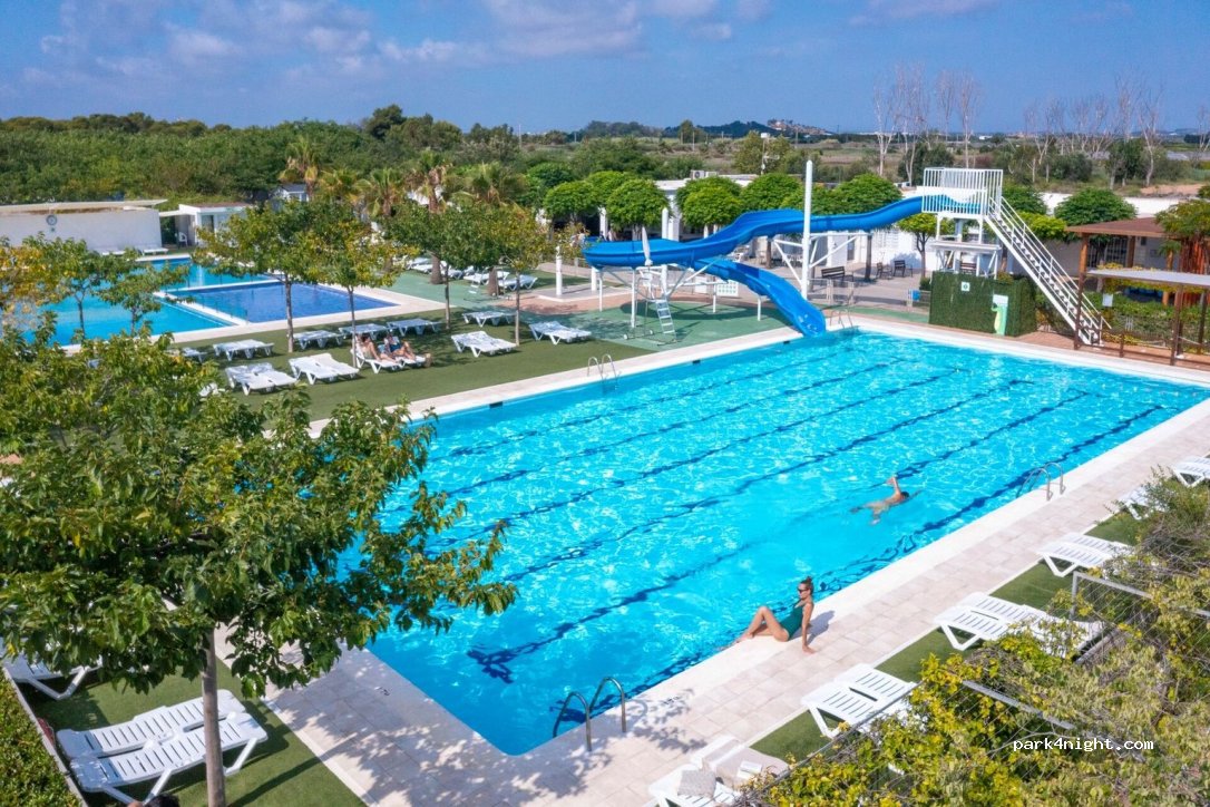 Very family-friendly place. With various types of entertainment, playground, Kids Club, swimming pools, tennis court and paddle tennis. Well-defined and clean place for motorhomes. Clean bathrooms, but not very modern. Restaurant, market. 5 minutes walk from the beach. Transport to the nearest town. Town with train connection to Valencia. Recommended.