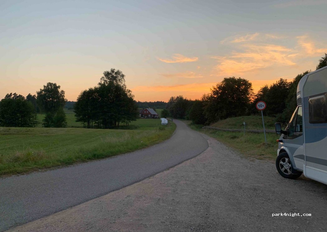 A pleasant countryside parking place with a clean lake next to it. A little sand beach, good for kids to go swimming as well. A fairly big road next to it, so some sound of traffic.