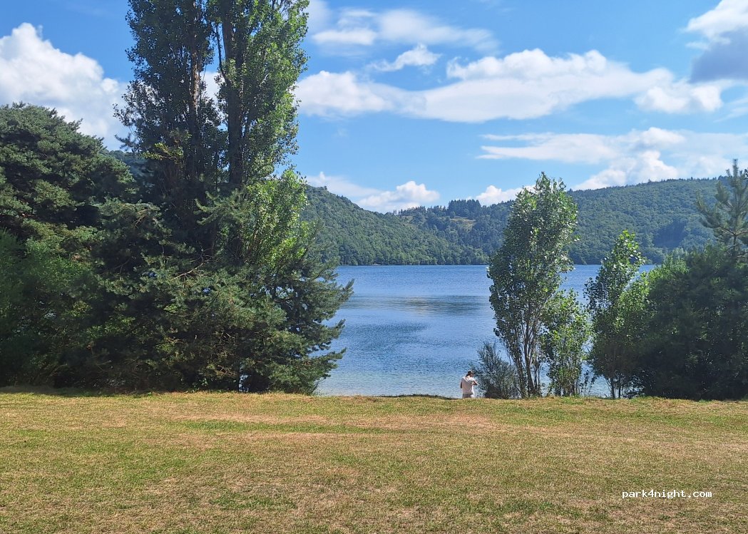 Belle vue sur le lac d’Issarlès emplacement non délimités sanitaires moyens prix très raisonnable 15€ pour 2 personnes en van + chien gratuit
