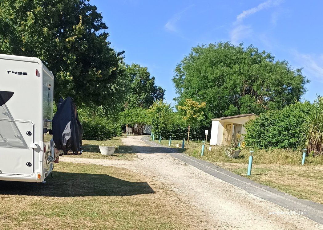Aire à l'extérieur du camping. Eau gratuite plus vidanges.