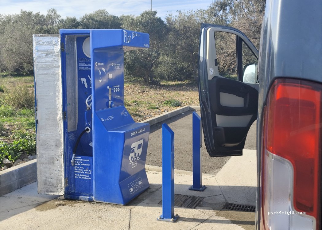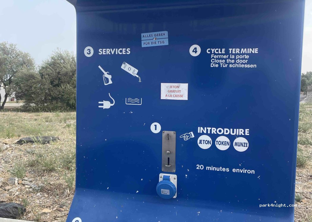 Discover our motorhome area, open year-round, 24/7, offering complete freedom just steps from local shops and restaurants. Enjoy quality services such as drinking water, waste disposal, electricity (10 kWh, 16 amps), as well as hot showers and on-site toilets.