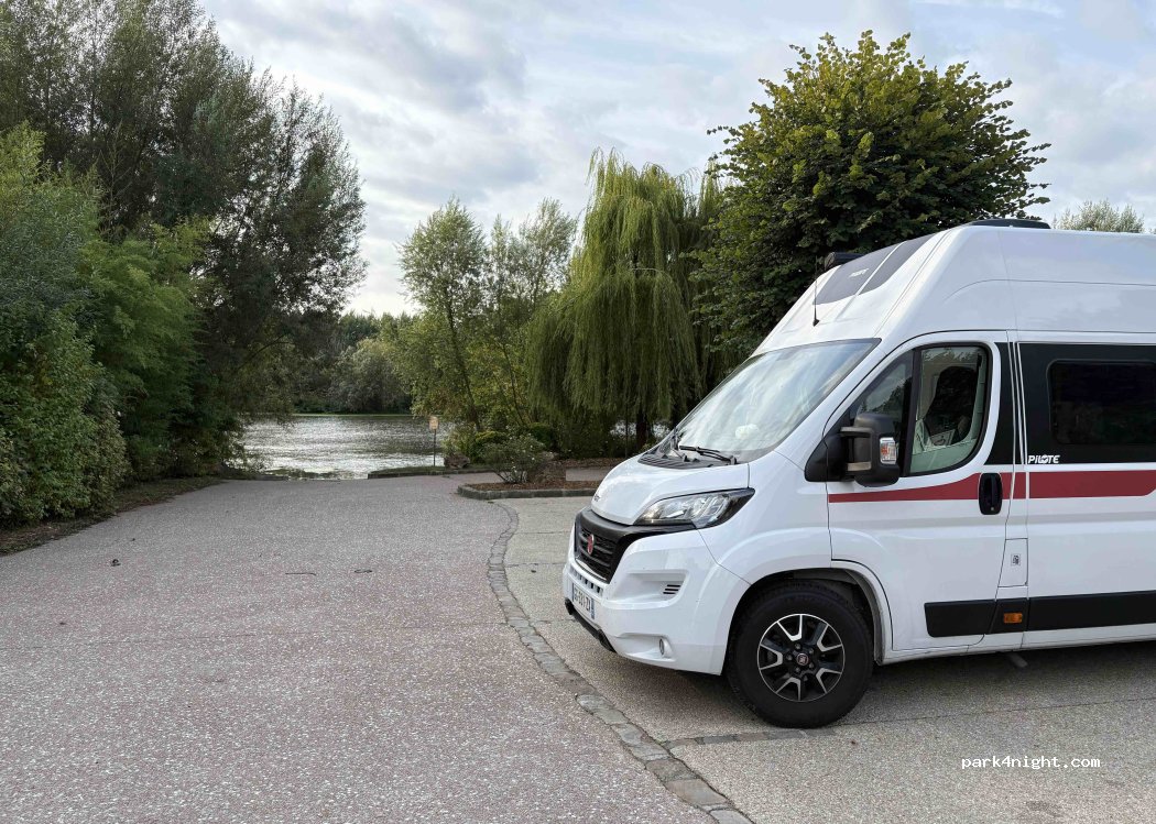 Parking de dix places au bord d'un bras de Seine. Calme, attaché à un petit terrain de football et une aire de jeux pour les enfants. Le sentier de l'aller permet des promenades tranquilles. Uniquement pour les vans, un endroit pour un camping-car.
