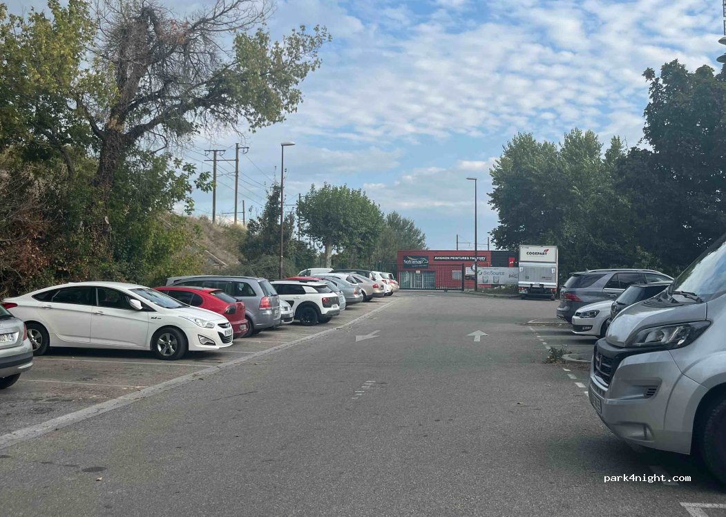 Parking gratuit à une vingtaine de minutes à pieds du centre ville. Pas de restriction de hauteur pour y accéder. Pratique pour visiter Avignon mais nous avons préféré ne pas y passer la nuit.