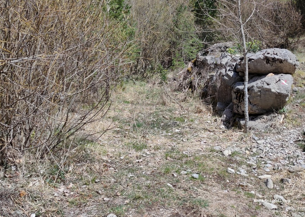 He afegit les fotos 2, 3 i 4. L'espai de l'esquerra és l'únic lloc on deixar el vehicle, espai per un sol vehicle i en pendent. Li poso una estrella perquè no veiem que sigui un lloc on poder dormir. Apuntar que, des de Planells de Sastró, l'accés és únicament viable amb 4x4. Desconeixem com està la pista venint des de l'altre costat.